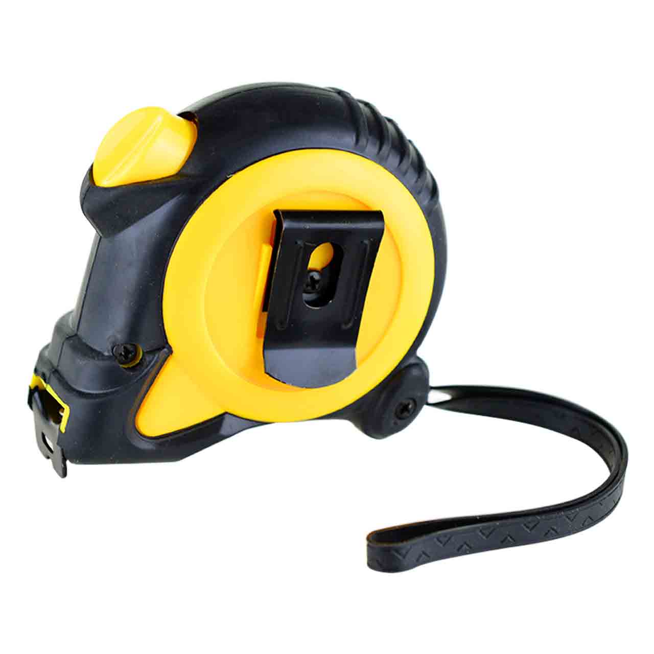 Рулетка на 7.5 метров имеет ремешок для ношения на запястье и металлическую клипсу для крепления на сумке или поясе.